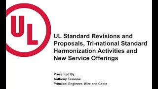 UL Standard Revisions and Proposals, Tri-National Standard Harmonization and New Service Offerings